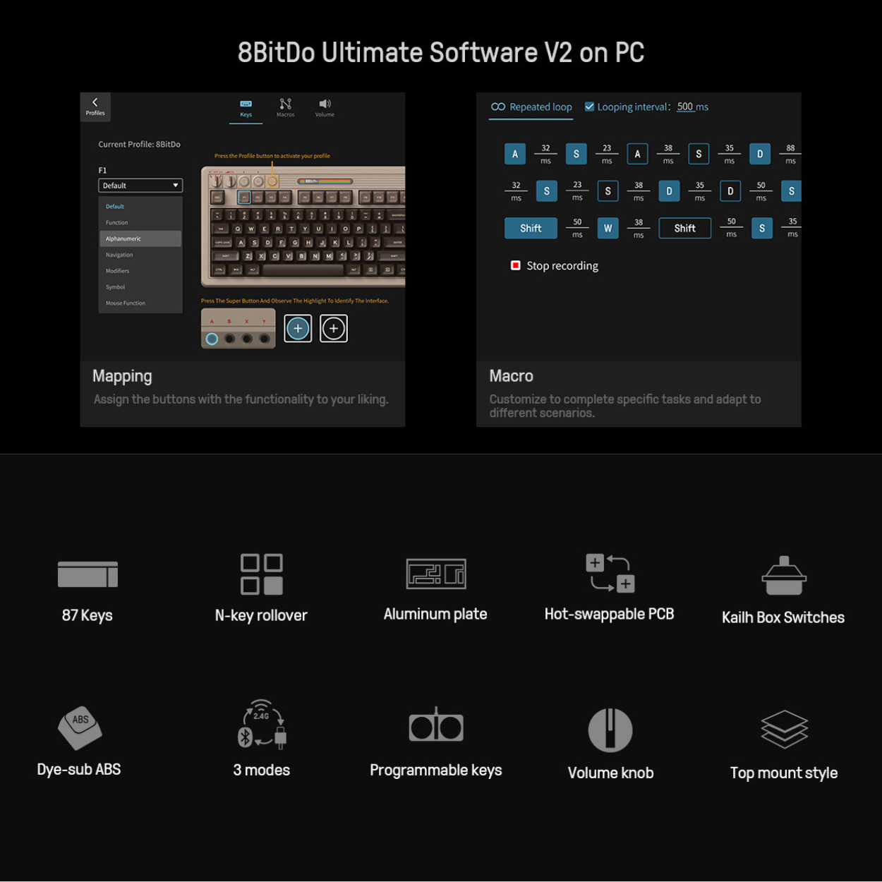 Like the 8BitDo Arcade Stick, our keyboard features an independent control panel. Say goodbye to complex shortcuts and enjoy effortless operations with just a turn and a click.